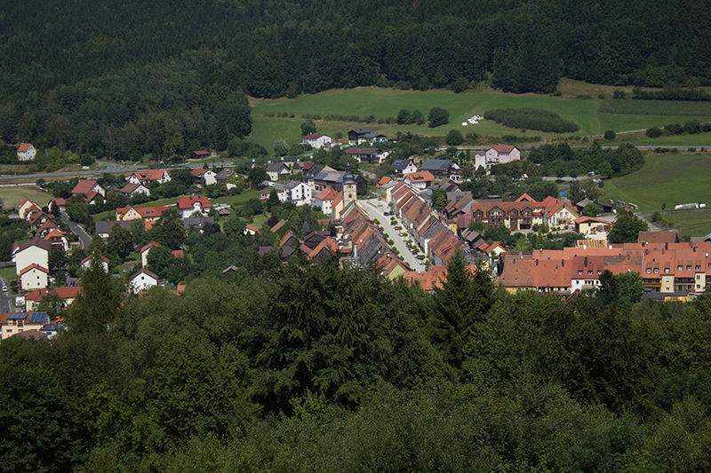 In the night of the 24th to the 25th March, 1794, a heavy storm swept across Waldeck. Upon being struck by lightning, one of the houses caught fire. Due to the strong winds it was impossible to keep it under control, and within a few hours the whole Markt was in flames. 57 families lost their homes in this tragedy, but on the same day, the townsfolk were already talking about rebuilding. It was agreed that the new Markt would not be rebuilt on the same site, but on the other side of the castle in Horitz, on the trade route between Franconia and Bohemia.