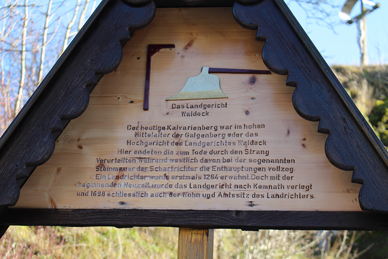 According to history, in 1596 the village council of Markt Waldeck submitted an official written request to the Count Palatine for the village to be able to build its own cemetery. However, a reply was not received. Three years later Hans Lankhammer died of an illness related to the pest. Fearful of spreading the infection, noone was prepared to transport the body to the parish of Kastl for burial. The priest therefore decided that the villager should be buried in a field near the Markt. This was the first burial in Waldeck.